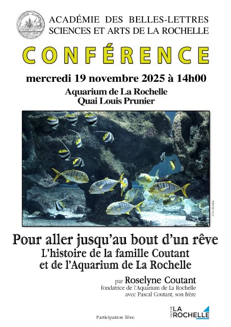 L’Académie organise régulièrement des colloques ainsi qu’ un prix tous les deux ans destiné à mettre en valeur un travail original de création sur la ville de La Rochelle. Par ses actions, elle participe à la vie intellectuelle de la cité.