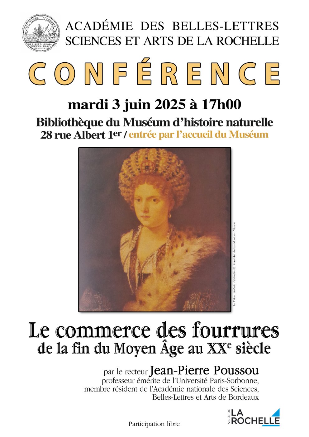 Mardi 3 juin : Jean-Pierre Poussou, professeur émérite de l’Université Paris-Sorbonne, membre résidant de l’Académie nationale des Sciences, Belles-Lettres et Arts de Bordeaux, présentera LE COMMERCE DES FOURRURES DE LA FIN DU MOYEN ÂGE AU XX° SIECLE.