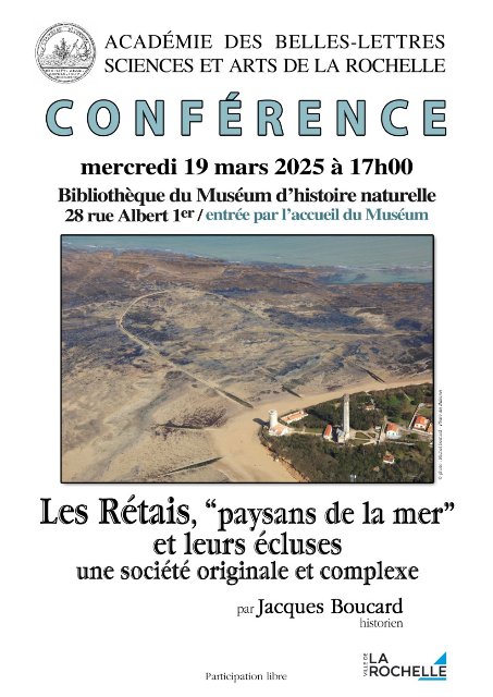 Mercredi 19 mars 2025 : Jacques Boucard, historien : Les Rétais, « paysans de la mer », et leurs « écluses » : une société originale et complexe