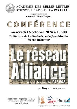Mercredi 16 octobre 2024 : Guy Caraes, historien, Le réseau Alliance à La Rochelle 1942-1945
