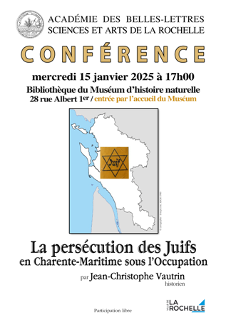 Si cette conférence est « centrée » sur la persécution des Juifs en Charente-Maritime, elle a aussi pour objectif de faire découvrir l’existence dans cet espace régional d’une communauté juive méconnue dont la présence remonte pour le moins au Moyen-Age.