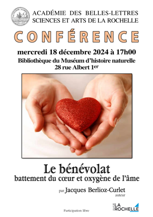Mercredi 18 décembre 2024 : Jacques Berlioz-Curlet, auteur : Le bénévolat, battement du coeur et oxygène de l’âme.